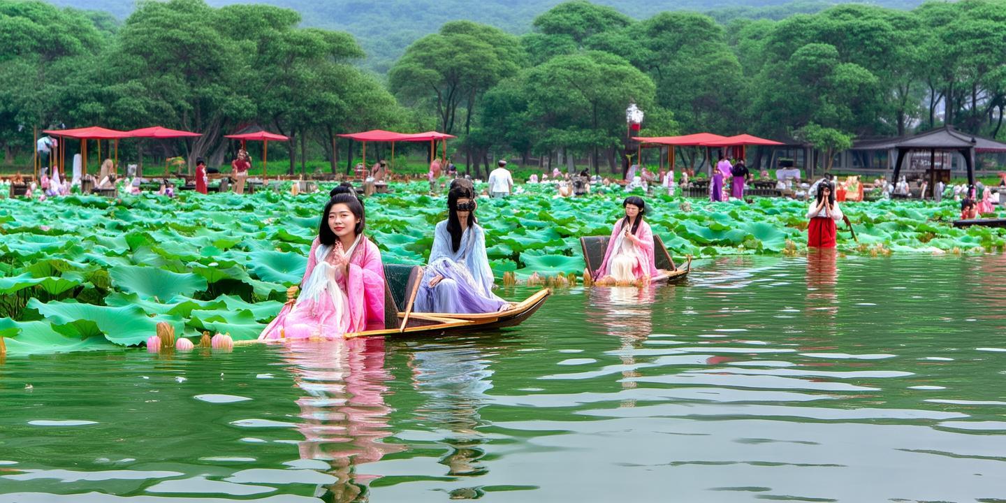 值得一提的是,为了更好地满足游客们的需求,顺峰山公园特别推出了“穿汉服免费跟拍”活动。游客们只需在游览过程中穿上汉服,即可获得专业摄影师的免费跟拍服务。摄影师们将用镜头记录下游客们身着汉服在荷塘中的美丽瞬间,让游客们将这份独特的回忆带回家。