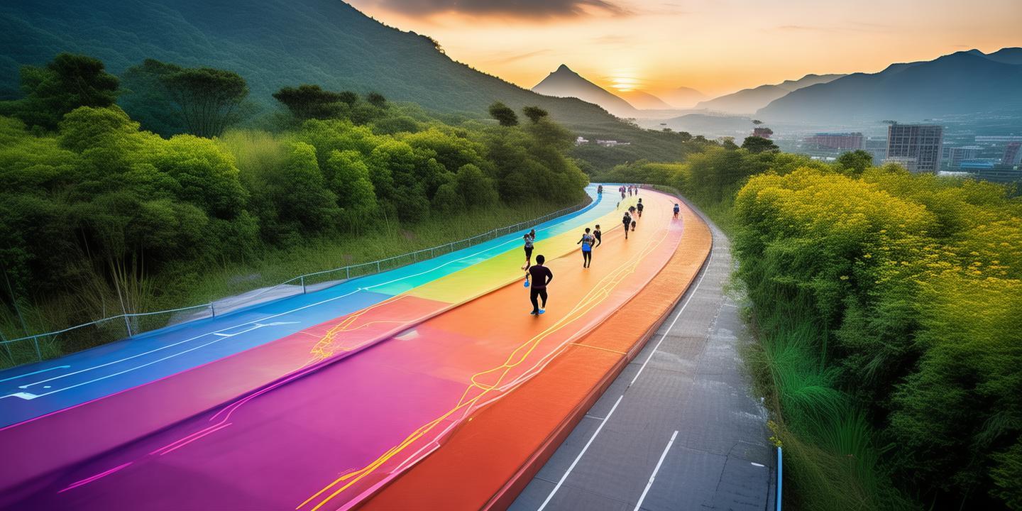 这条彩虹智能跑道全长约1.5公里,跑道宽约3米,采用环保材料铺设,色彩斑斓的彩虹图案不仅美观大方,还能激发跑者的运动热情。跑道两侧绿树成荫,环境优美,为跑者提供了舒适的跑步环境。