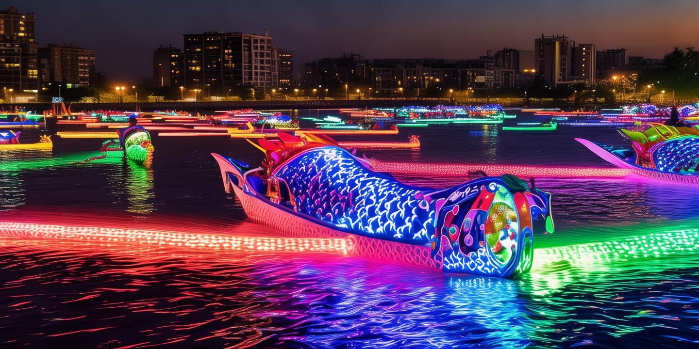 夜幕降临,水道两岸灯光璀璨,288艘龙船依次排列,整装待发。随着一声令下,龙船如离弦之箭,破浪前行。船上的夜光设备闪烁着五彩斑斓的光芒,将整个水道映照得如同白昼。这一壮观的景象,吸引了众多游客和摄影爱好者前来观赏。